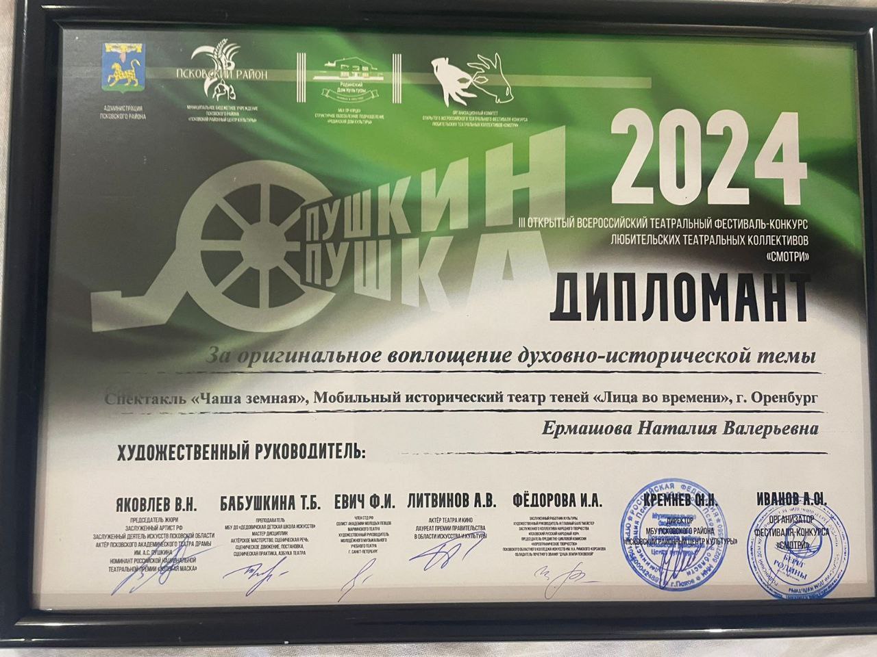 Театр теней «Лица во времени» из Оренбурга выступил на фестивале любительских театров «Смотри». Он прошёл в Арт-резиденции «Берег Родины» в Пскове.