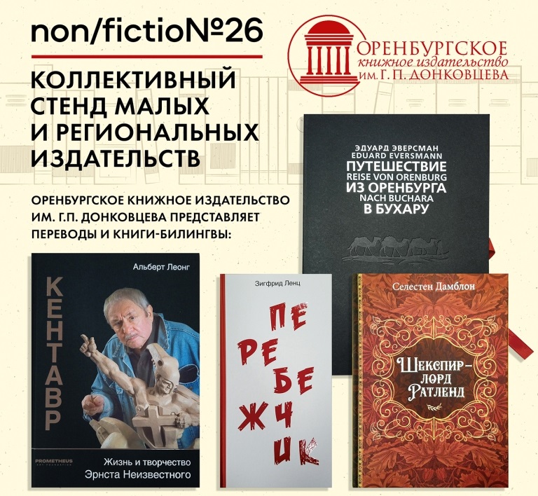 Оренбургское книжное издательство имени Донковцева традиционно примет участие в Ярмарке интеллектуальной литературы «Нон/фикшн», которая пройдёт в Москве с 5 по 8 декабря. Оренбуржцы представят несколько новинок этого года.