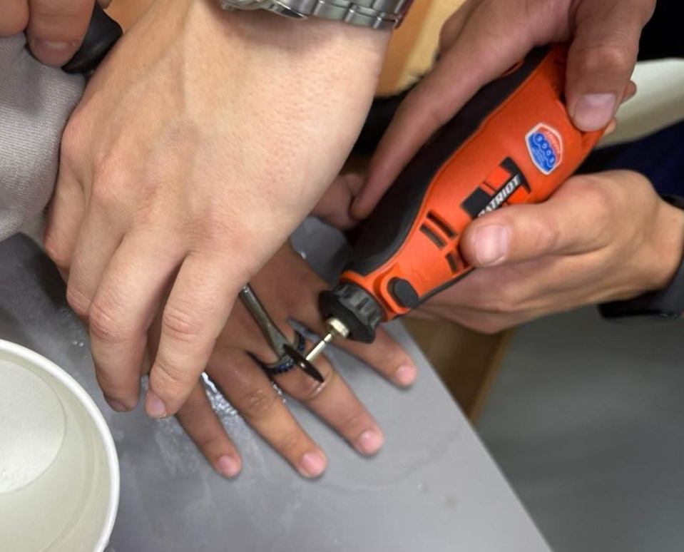 Спасатели с помощью слесарного инструмента распилили кольцо и освободили палец подростка. Дальнейшая медицинская помощь не потребовалась.