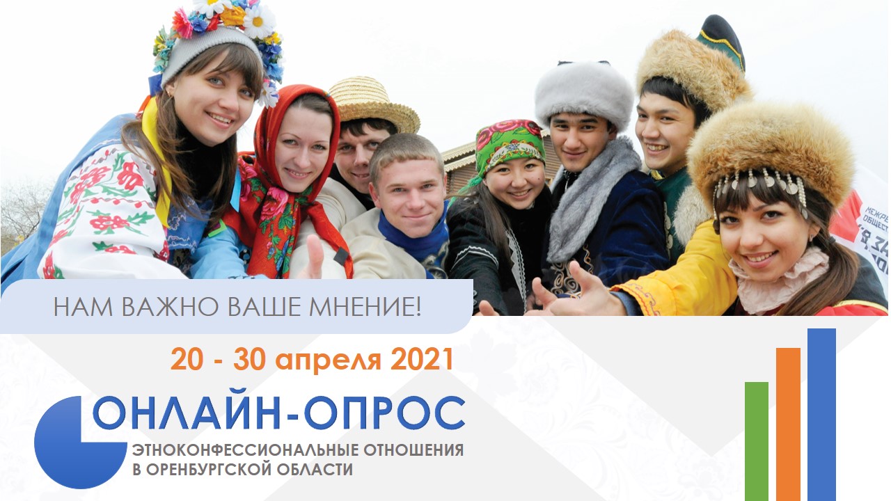Оренбуржье один из многонациональных регионов, здесь проживает более 120 народов России. Опрос проводится с 20 по 30 апреля 2021 года управлением по делам национальностей и казачеству министерства региональной и информационной политики Оренбургской области. Его цель — оценить состояние межнациональных и межконфессиональных отношений в регионе.