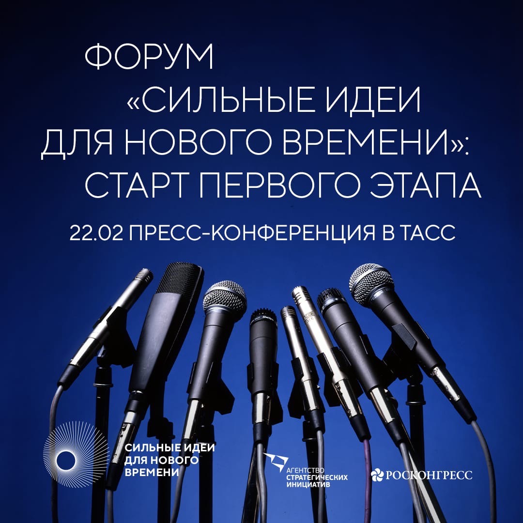 22 февраля начнется сбор идей для второго федерального форума «Сильные идеи для нового времени». В этот же день в 15.00 по московскому времени состоится пресс-конференция, посвященную форуму и подготовке к нему.