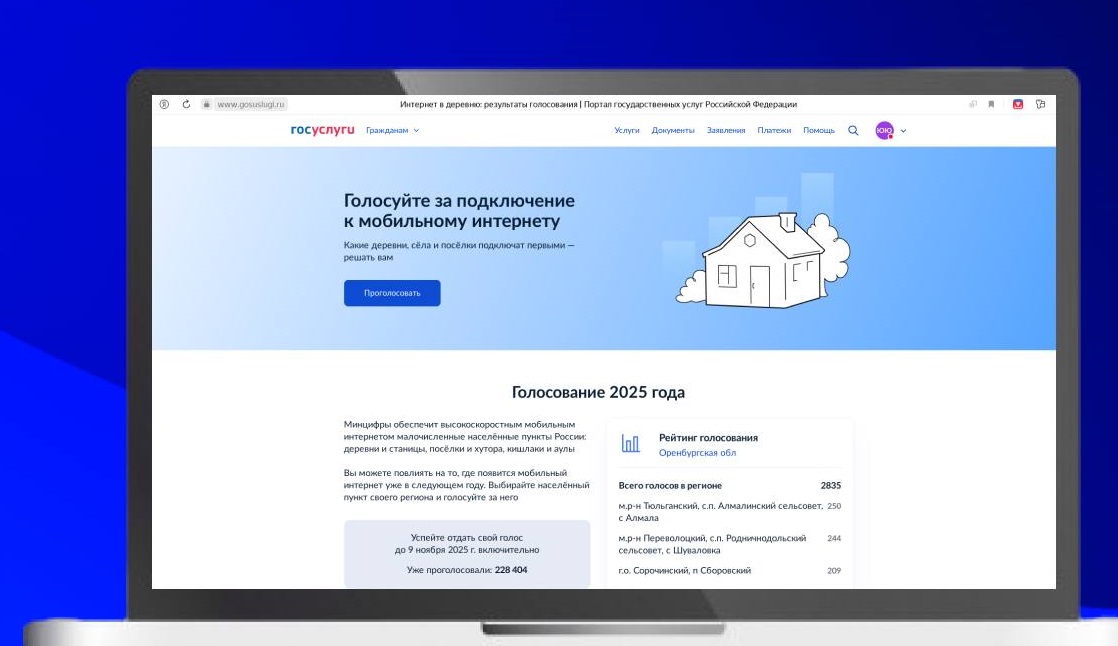 До 9 ноября жители Оренбургской области могут проголосовать за малочисленные деревни и сёла, где в следующем году появится высокоскоростной мобильный интернет по федеральной программе «Устранение цифрового неравенства (УЦН 2.0)». Её цель — обеспечить связью населённые пункты с численностью от 100 до 1000 человек.