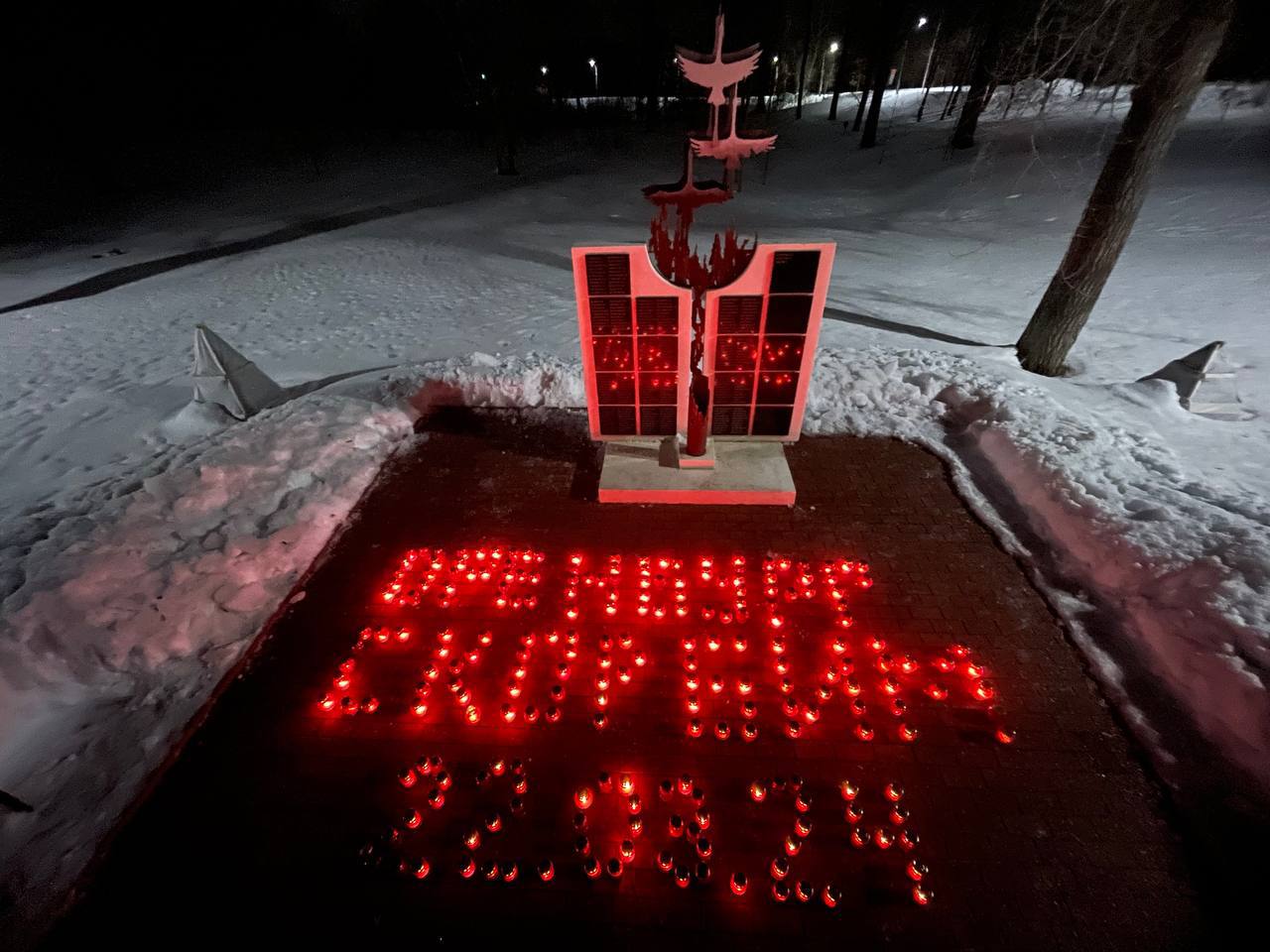 В Оренбурге к акции первыми присоединились участники профильных смен регионального центра «Авангард». Из свечей рядом с мемориалом «Имена из солдатских медальонов» школьники выложили надпись «Оренбург. Скорбим. 22.03.24» под песню Муслима Магомаева «Журавли» и почтили память погибших минутой молчания.