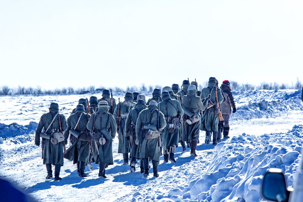 – Нам просто стало интересно и захотелось принять участие в съёмках. Сегодня мы играем немецких солдат, а до этого мне, например, довелось сыграть советского воина, – рассказал один из участников съёмочного процесса, – роль советского солдата была, конечно, приятнее, но в целом, нам всё нравится. Съёмки на ветру и в мороз нас не пугают.