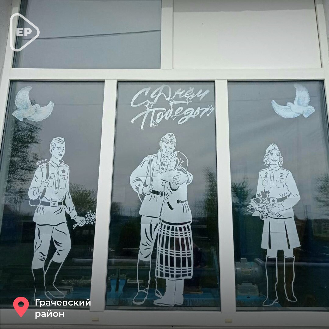 Жители Оренбургской области украсили окна в честь Дня Победы. Акция прошла при поддержке регионального Движения Первых.