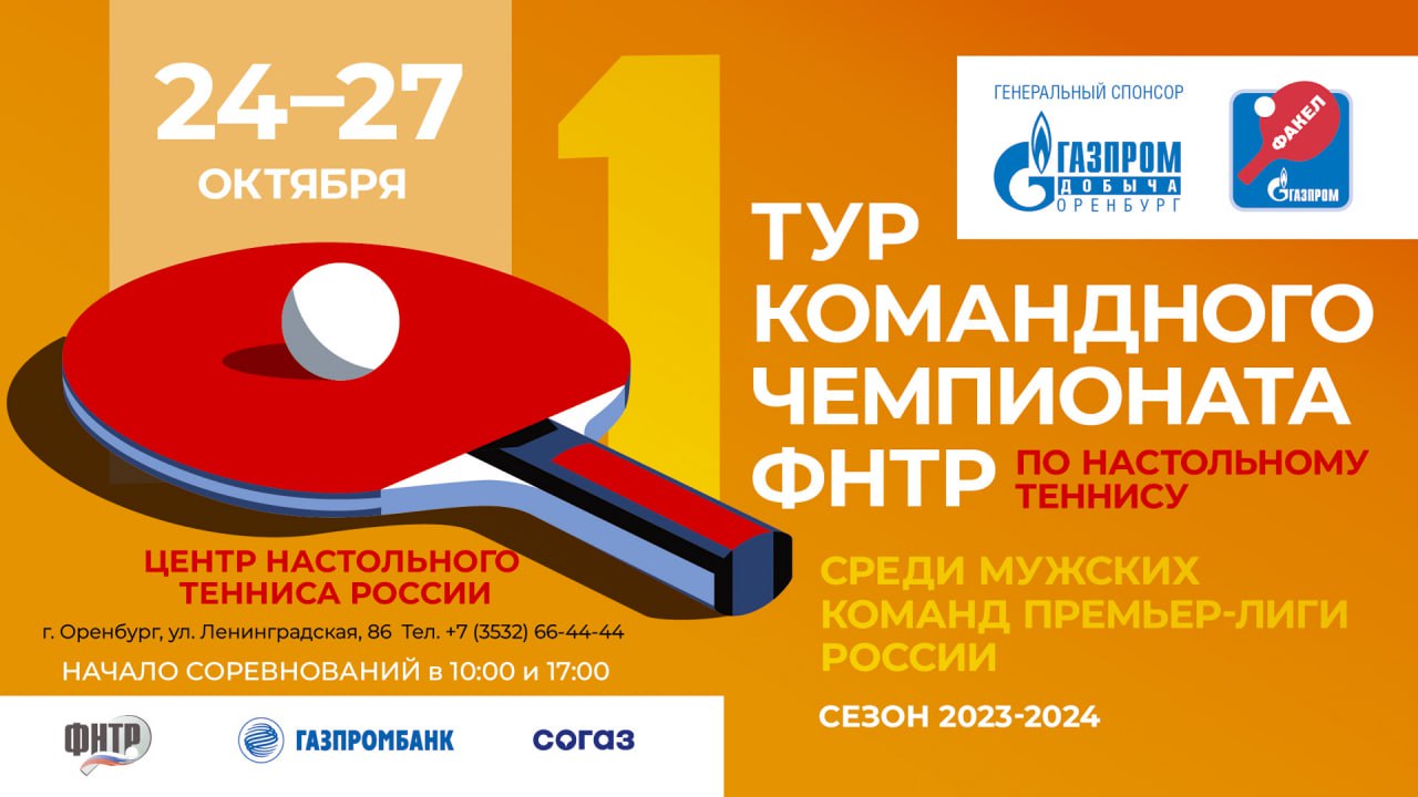 В Оренбургской области пройдёт первый тур командного чемпионата Федерации настольного тенниса России среди мужских команд премьер-лиги.