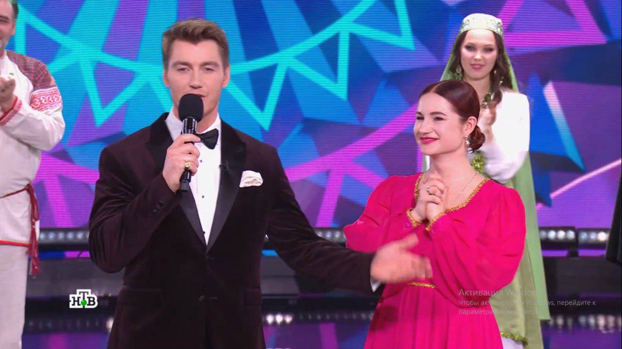 На сцену вышли 10 коллективов и солистов. Анастасия Меденюк выступила первой, исполнив композицию «Какая песня без баяна». Ведущий шоу Алексей Воробьев сравнил оренбургскую певицу с героиней культового советского фильма Фросей Бурлаковой.