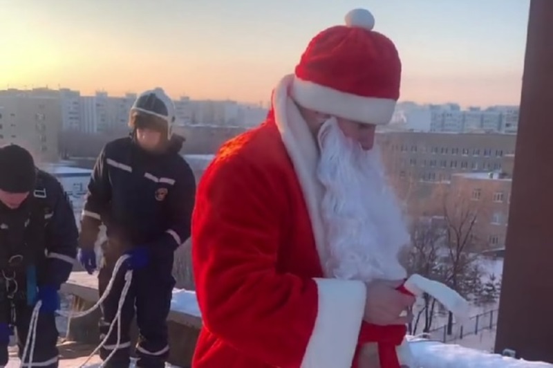 25 декабря в окна пациентов Центра детской хирургии оренбургской областной детской больницы постучал Дед Мороз. Главный волшебник поднялся на крышу ЦДХ и оттуда спустился к ребятам, используя альпинистское снаряжение.