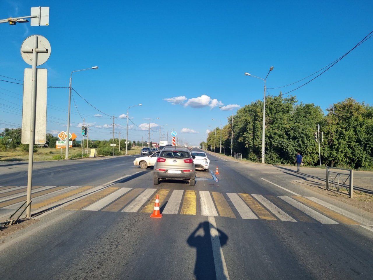 6 августа в 17.10 часов 36-летняя женщина-водитель автомобиля «КИА» врезалась в стоящий в левом ряду автомобиль «Форд» под управлением 49-летнего водителя. После чего «Форд» въехал в «ВАЗ-211440», который стоял в левом ряду и собирался поворачивать налево.