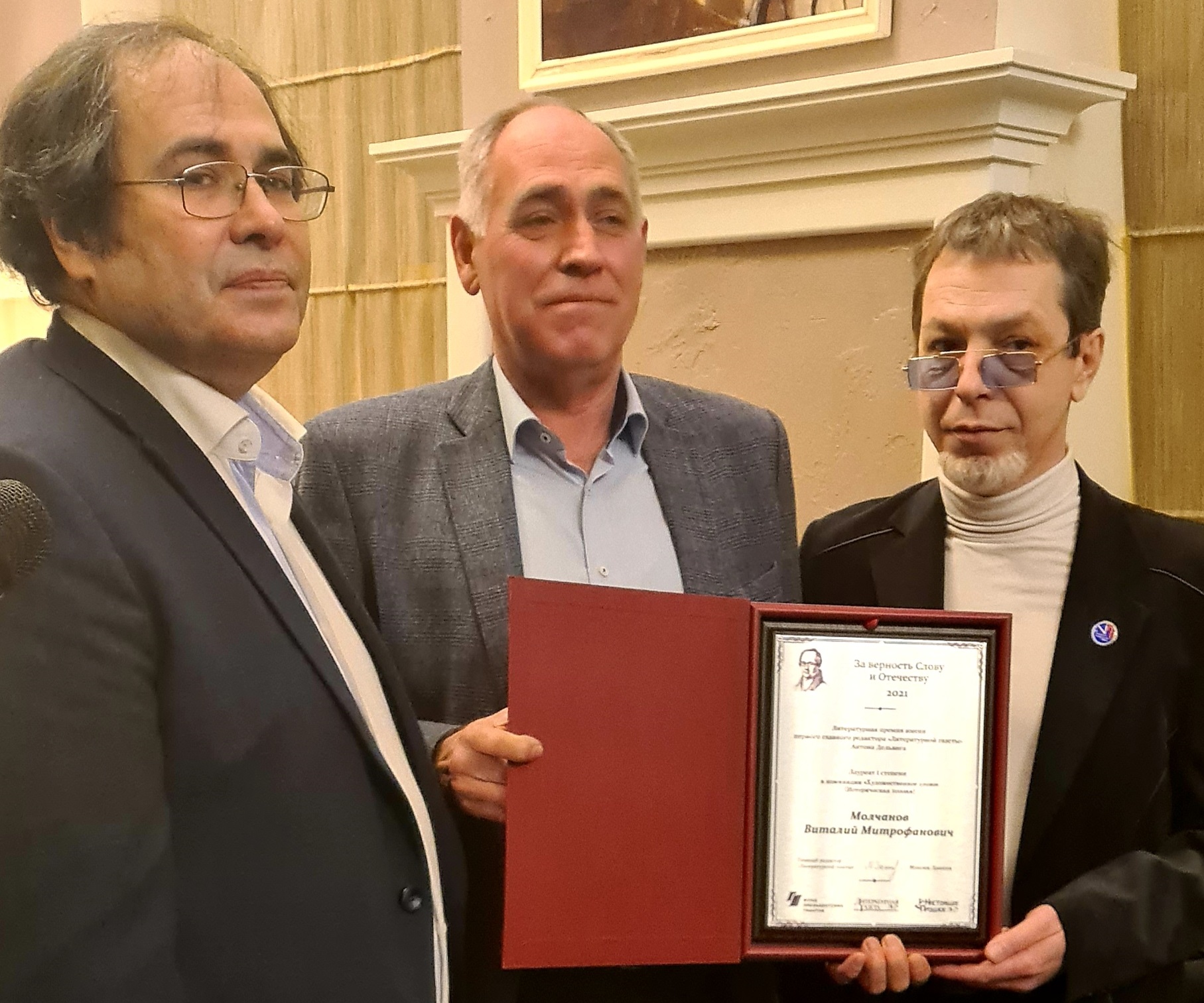 Виталий Молчанов из Оренбурга стал победителем в номинации «Поэзия» с поэмой «Донецк», расказывающей о реалиях войны и борьбы за Русский Мир, эпиграфом к которой стали слова Сергея Есенина «Земля — корабль!».