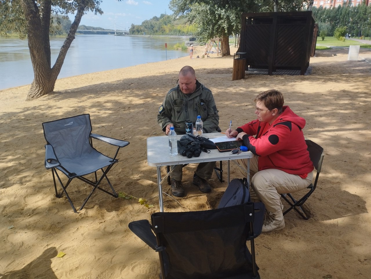 Поисковый отряд «ОренСпас» кооринирует работу волонтёров в районе пляжа на Красной площади.