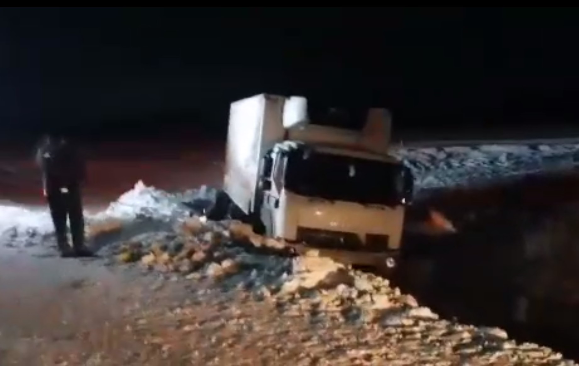 На место происшествия прибыли инспекторы ДПС Сергей Кислица и Роман Юсупов. Водитель грузовика рассказал им, что двигался в сторону Орска, не справился с управлением и допустил съезд в правый кювет. Попытки выбраться самостоятельно ни к чему не привели – автомобиль еще больше увяз в снегу.