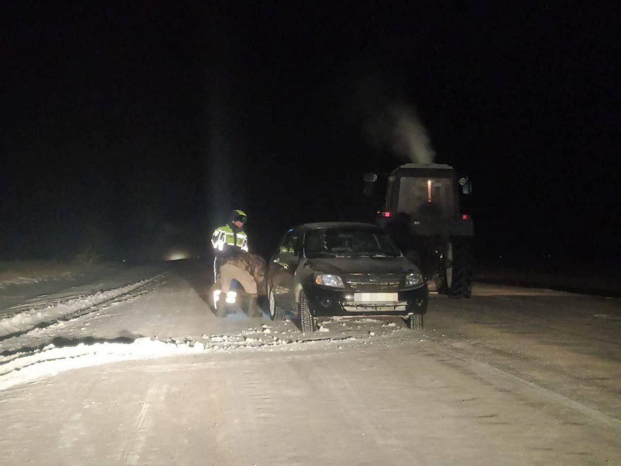 Температура воздуха в момент аварии достигала отметки в минус 34 градуса. На помощь водителю пришли сотрудники ДПС — Дарбек Шукумов и Рустам Куандыков. Дорожные полицейские запросили поддержку у местного фермера. Совместными усилиями при помощи трактора и троса автомобиль вытянули на трассу.