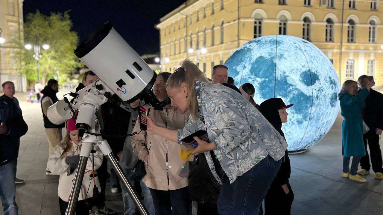 — Диаметр этой Луны три метра. Мы сами вдохновились ее величиной, когда впервые увидели такую в планетарии Санкт-Петербурга. Как оказалось, нет ничего невозможного, и вот она красивая у нас на набережной города. К тому же, это отличная фотолокация. Сегодня здесь были сделаны сотни снимков, — рассказала организатор проекта «Смотри на звёзды» Татьяна Гавриш.