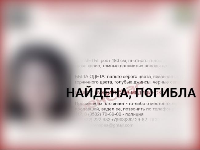 Тело пропавшей было обнаружено 4 февраля в районе Зауральной рощи без видимых признаков насильственной смерти. Точную причину смерти установит судебно-медицинская экспертиза. Полицейские устанавливают все обстоятельства случившегося.