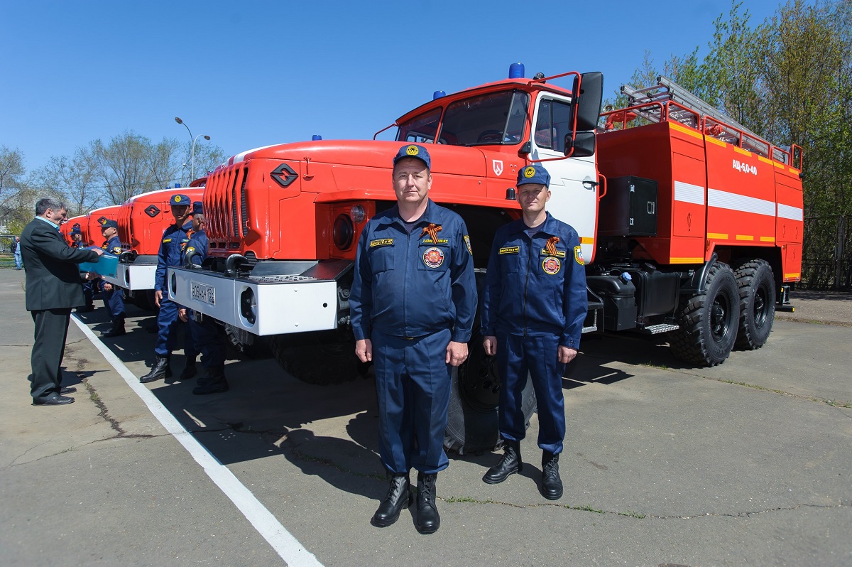 На вооружение подразделений поступило 9 автомобилей основной пожарной техники на базе шасси «УРАЛ» и два — на базе шасси «ГАЗ».