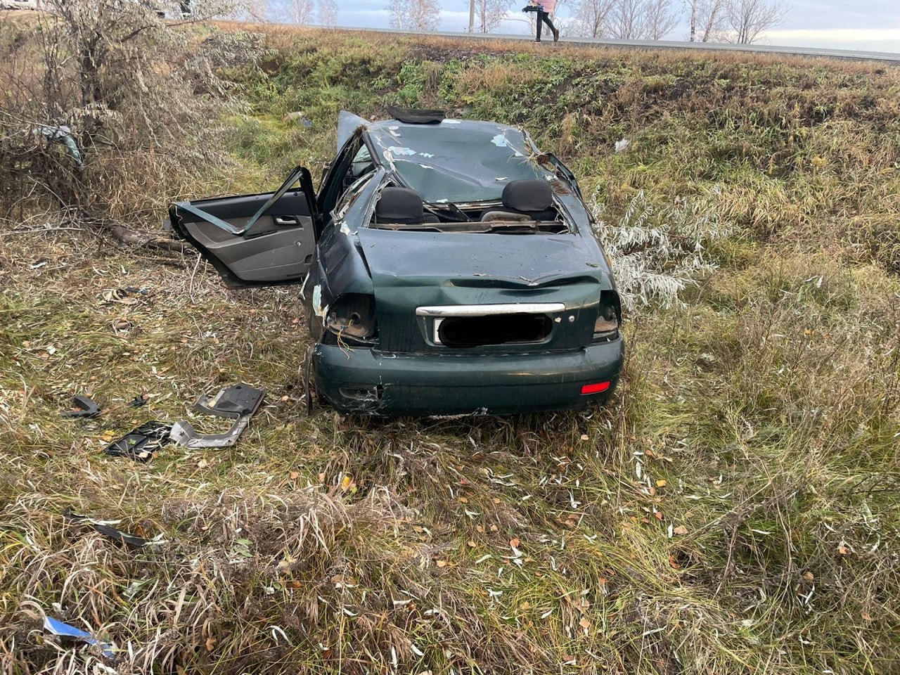 На трассе «Самара – Оренбург» возле посёлка Красногвардеец 32-летний водитель автомобиля LADA Priora не справился с управлением. Машина на скорости слетела в кювет и опрокинулась.