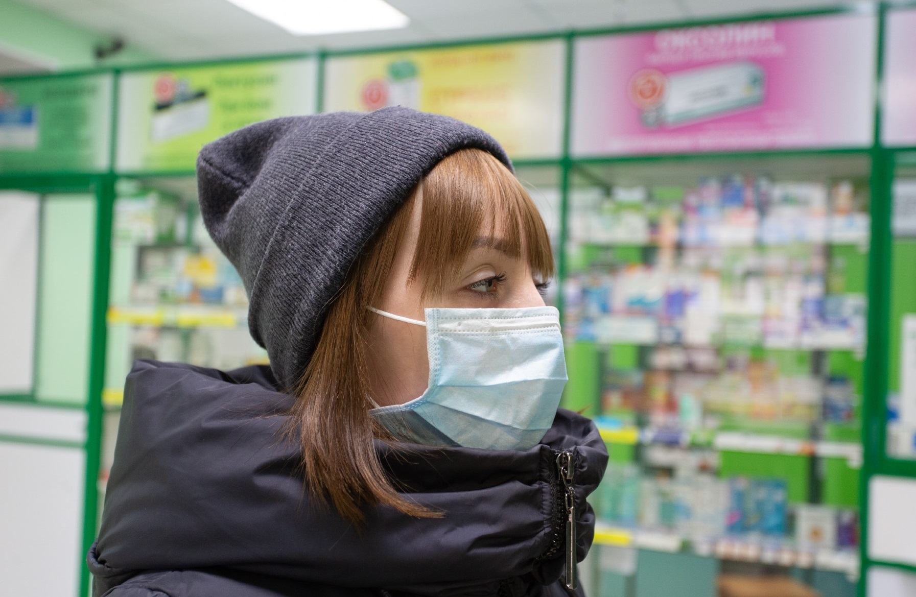 Поход сюда считается самым опасным, так как зачастую именно сюда приходят нездоровые люди. А тот факт, что чаще всего аптеки располагаются в небольших помещениях, то дистанцию соблюдать в них сложнее. При посещении аптеки необходимо использовать маску. Нос можно обработать противовирусной мазью.