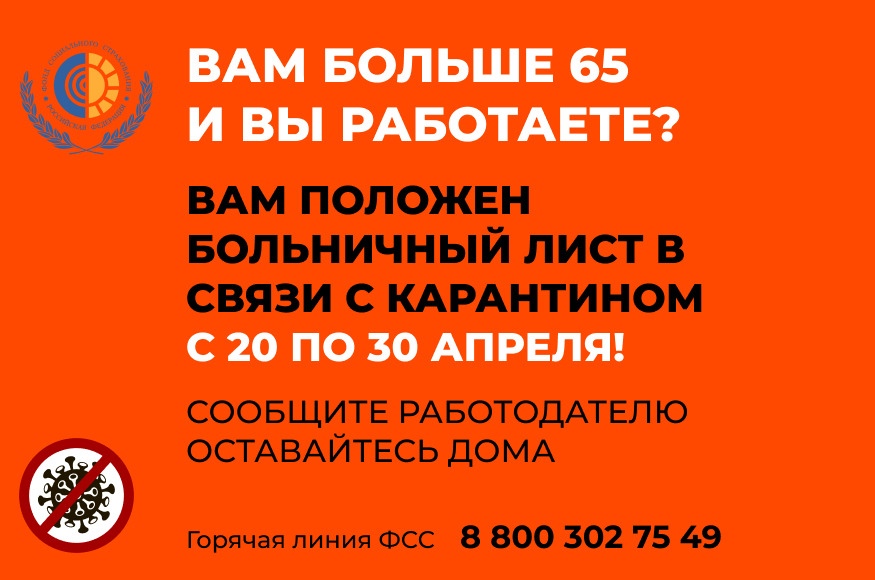 – В соответствии с Постановлением Правительства Российской Федерации № 517 от 16.04.2020, работающим гражданам 65 лет и старше на период самоизоляции с 20 по 30 апреля полагается ещё один электронный листок нетрудоспособности, – разъясняет управляющий Оренбургским региональным отделением Фонда социального страхования Валентина Девякович. – Он также будет оформляться на основании данных, которые работодатели должны оперативно направить в ФСС. Работникам не потребуется предоставлять какие-либо дополнительные сведения или документы.