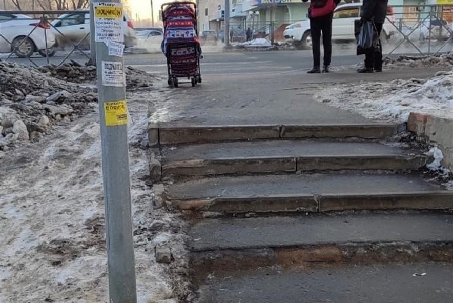 О ситуации в социальных сетях написала жительница областного центра. Оренбурженка пожаловалась, что на подходе к остановке общественного транспорта в районе ЖК «Времена года» по проспекту Победы не предусмотрены пандусы.