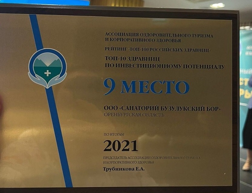 На IV Ежегодном всероссийском форуме «Инвестиции в развитие здоровой страны. Цифры. Факты. Возможности» в Москве санаторий «Бузулукский Бор» занял 9 позицию по инвестиционному потенциалу и 65 место в Рейтинге инвестиционной привлекательности «ТОП-100» среди здравниц России.