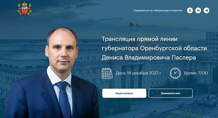 14 декабря губернатор Оренбургской области Денис Паслер проведёт ежегодную прямую линию.