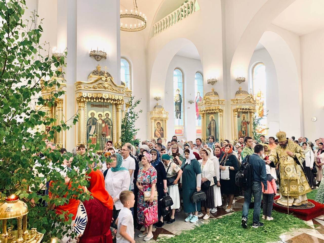 По традиции пол на Троицу в церквях и домах устилают свежескошенной травой, между иконами ставят цветы, и даже сами иконы на Троицу одевают в оклады из березовых ветвей. Верующие стоят церковную службу праздника Святой Троицы с ветками березы в руках, священники на Троицу одеты в зелёные одежды.