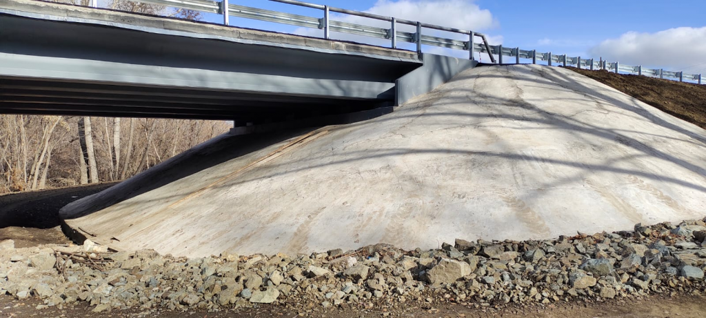 Реконструкция моста через реку Кураган велась с мая этого года. На объекте полностью заменили мостовое полотно, построили новые опоры и пролетные строения, установили барьерные и перильные ограждения. Протяженность отремонтированного моста — более 74 метров.