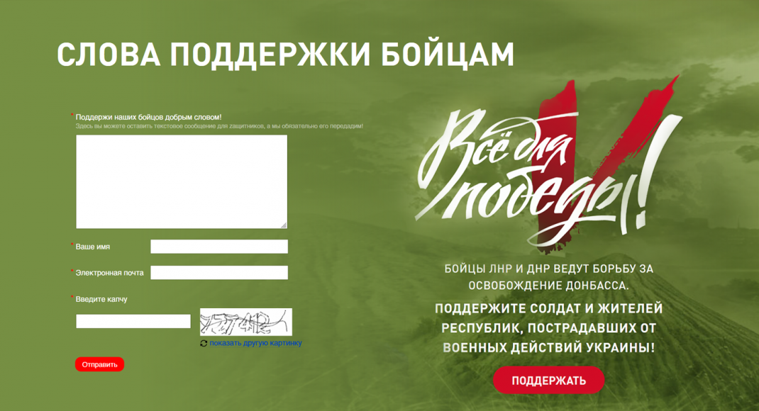 Народный фронт передаст все текстовые и аудио послания от жителей России офицерам и солдатам, которые сражаются с националистами. Ваша поддержка обязательно сделает их сильнее и приблизит нашу общую Победу!