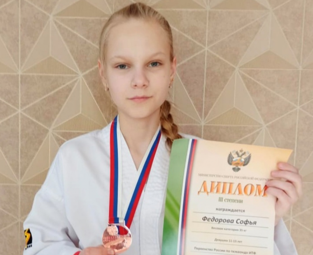 Юная тхэквондистка из Абдулино Софья Федорова заняла третье место в возрастной группе 11-13 лет в весовой категории до 35 кг.