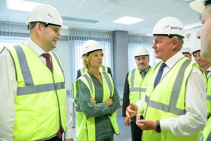 Министр сельского хозяйства РФ Оксана Лут и врио губернатора Оренбургской области Евгений Солнцев ознакомились с ходом строительства завода «Астон-Поволжье» в Бузулуке.