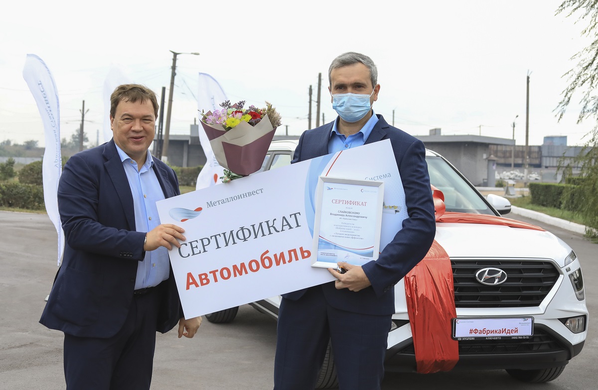 Главный приз конкурса – автомобиль, он был вручен за инициативу заместителя начальника листопрокатного цеха Владимира Слайковского. Внедрение его идеи позволяет увеличить стойкость дорогостоящих датчиков клети ДУО стана 2800 и получить экономический эффект 11,6 миллионов рублей в год.
