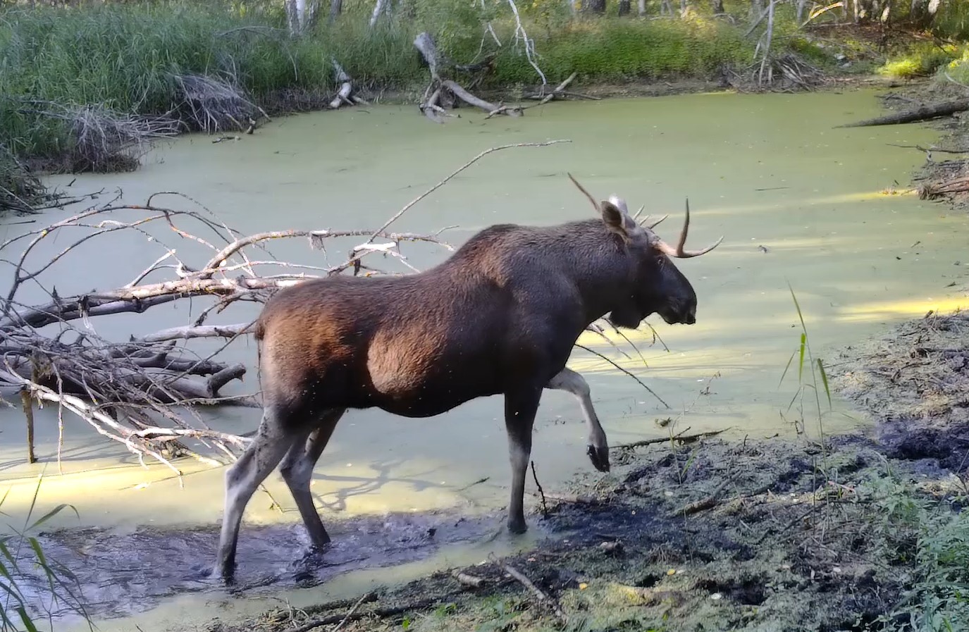 Подтверждением тому стали кадры фотоловушки, в которую попались лоси разной степени рогатости. Разница по отросткам и у одного, и у другого зверя двойная: пять против девяти и два против четырёх соответственно.