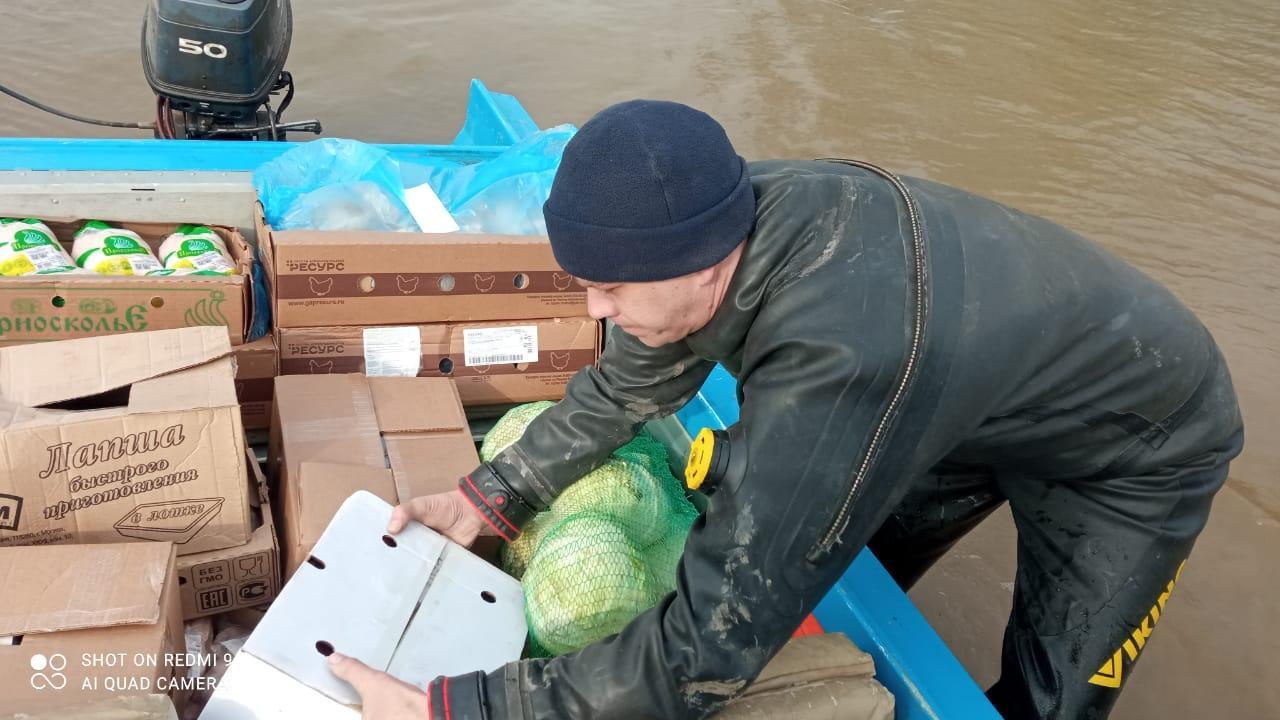 В минувшую пятницу спасатели аварийно-спасательной службы Оренбургской области (Евгений Горячев – спасатель 1 класса, Александр Копылов – спасатель 1 класса и Дмитрий Котляр — спасатель 2 класса) на моторной лодке помогли пополнить продовольственный запас в сельских магазинах общим весом 1 тонна. Это хлеб, консервы, овощи, мясо и другие продукты.