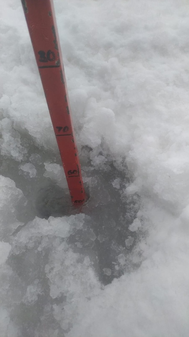 По результатам замеров толщина льда составляет около полуметра.