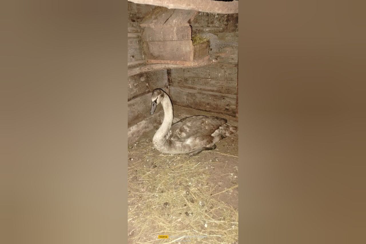 Недавно спасители величавой птицы навестили лебедя и убедились в том, что подопечный зимует в тёплом сарае, в компании кур, голубей и гусей. Лебедь чувствует себя прекрасно, значительно подрос и окреп.