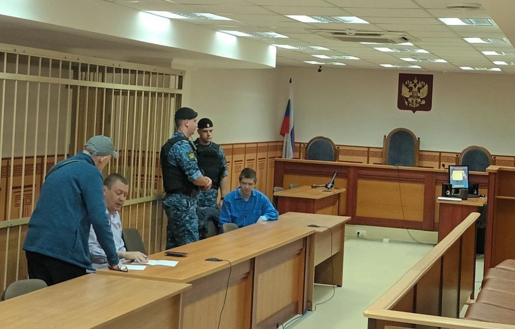 В зал суда Тучина доставили из психиатрической больницы, он был в пижаме и без наручников. Рядом с ним были его отец и адвокат.