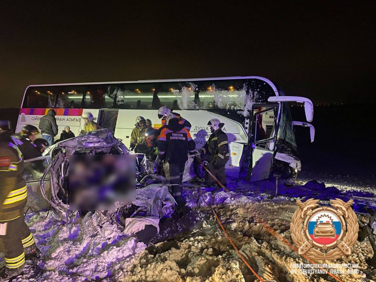 Вечером 16 февраля на 217-м километре трассы «Уфа — Оренбург» произошло столкновение автомобиля Opel Astra и пассажирского автобуса Yutong.