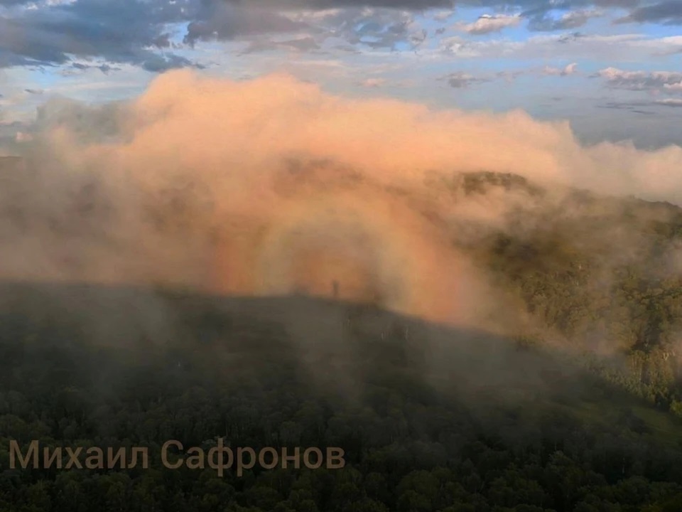 Во время путешествия по природному парку «Мурадымовское ущелье» в Башкортостане Евгения и Михаил Сафроновы из Оренбургской области стали свидетелями необычного природного явления — Брокенского призрака. Снимком редкого оптического эффекта они поделились в социальных сетях.