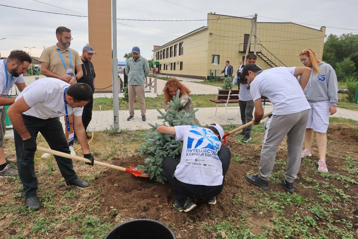 А затем в посёлке Сагарчин Акбулакского района участники экспедиции совместно с представителями Оренбургской области высадили деревья на аллее дружбы.