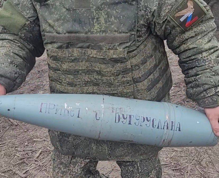 Военнослужащие выстрелили в сторону вражеских позиций снарядом, на котором оставили надпись: «Привет с Бугуруслана».