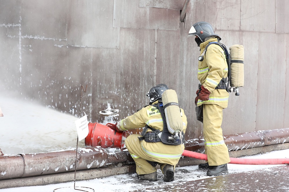 По легенде учений из-за механического повреждения запорной арматуры одной из емкостей хранилища произошел розлив дизельного топлива с образованием токсичного пожароопасного облака на площади до 600 кв. метров. Первыми на место ЧС оперативно прибыли расчеты добровольных пожарной и газоспасательной дружин цеха. До приезда профессиональных огнеборцев, медиков и спасателей они организовали спасение «условного» пострадавшего из опасной зоны. Прибывшие пожарные для предотвращения риска возможного возгорания розлива провели пенную атаку. В учении было задействовано порядка 90 человек и 22 единицы техники.