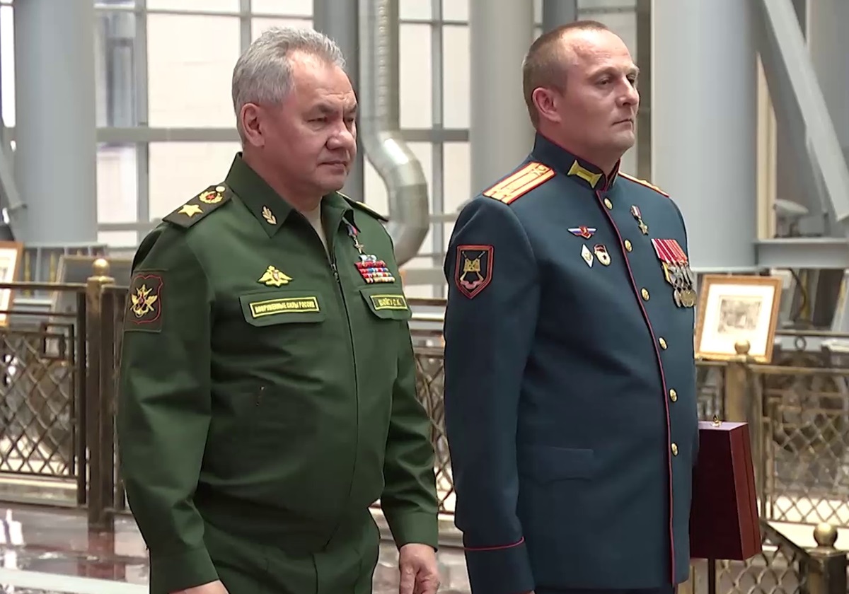 Звезду Героя России командиру мотострелкового полка Ивану Клещерёву вручил министр обороны Сергей Шойгу.