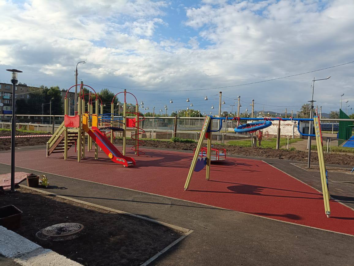 В Кувандыке на общественной территории в районе улицы Мичурина и улицы Клубной заасфальтированы дорожки, установлены тротуарный и дорожный бордюры. Для полного освещения площадки смонтированы 2 парковых светильника и 12 фонарей. Установлены малые архитектурные формы – разного вида качели, карусели, горки, ограждение по периметру, уложено резиновое покрытие. Подрядчику осталось убрать мусор, установить велопарковку, cкамейки и урны.