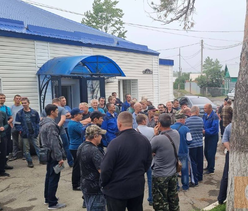 Утром 19 июля около 40 работников коммунального предприятия «БиОз» собрались у офиса, чтобы обсудить вопросы, касающиеся начисления заработной платы.