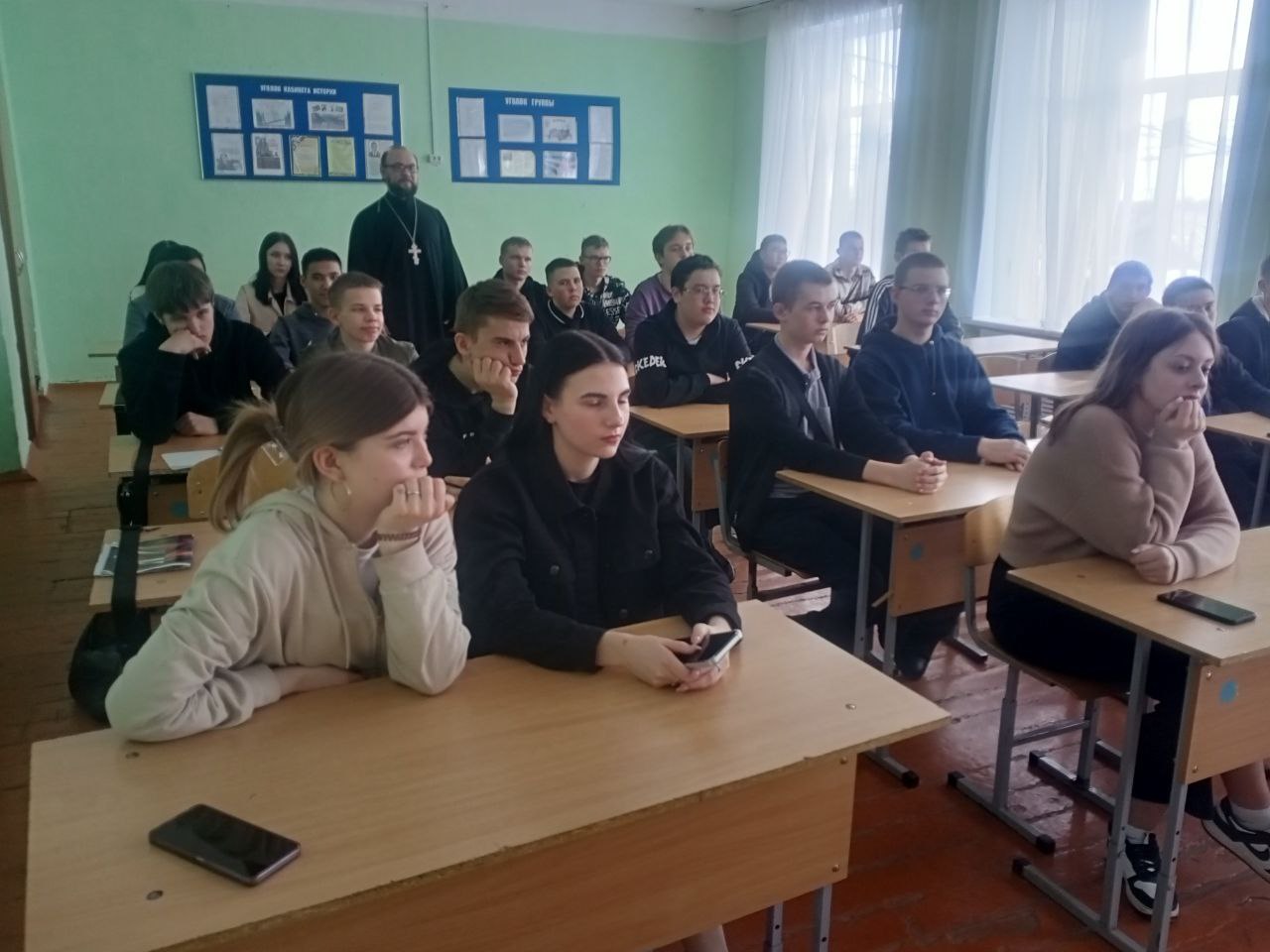 В Политехническом техникуме Акбулака иерей Виталий Поваляев провёл лекцию-беседу со студентами 1-2 курсов «Проблема наркомании и алкоголизма в молодежной среде».