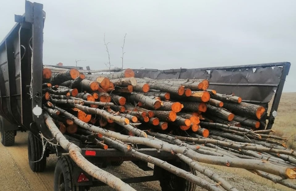 На грейдерной дороге «Акбулак — Кайракты» полицейские остановили трактор с двумя прицепами, в которых находились свежесрубленные стволы деревьев.