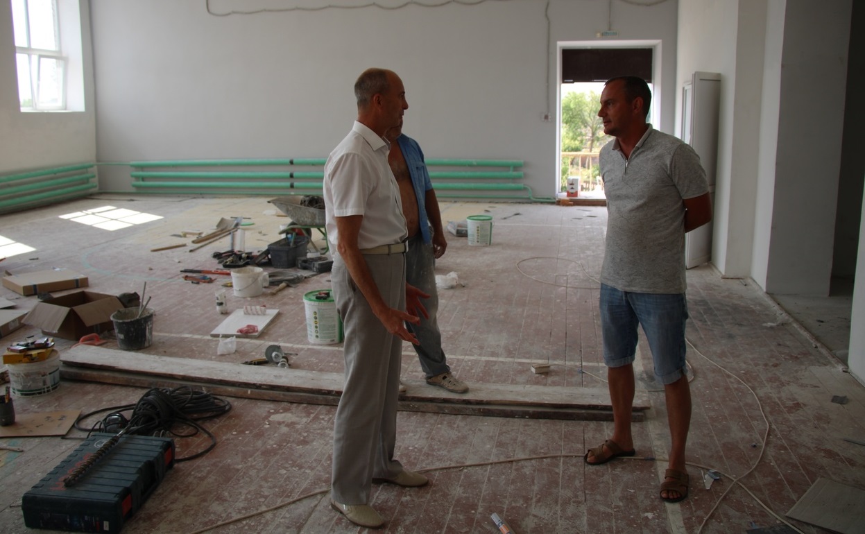 Глава района Сергей Гринев проверил ход капитального ремонта в Новомихайловском спортивном зале. Он отметил, что работы ведутся добросовестно и будут завершены в срок.