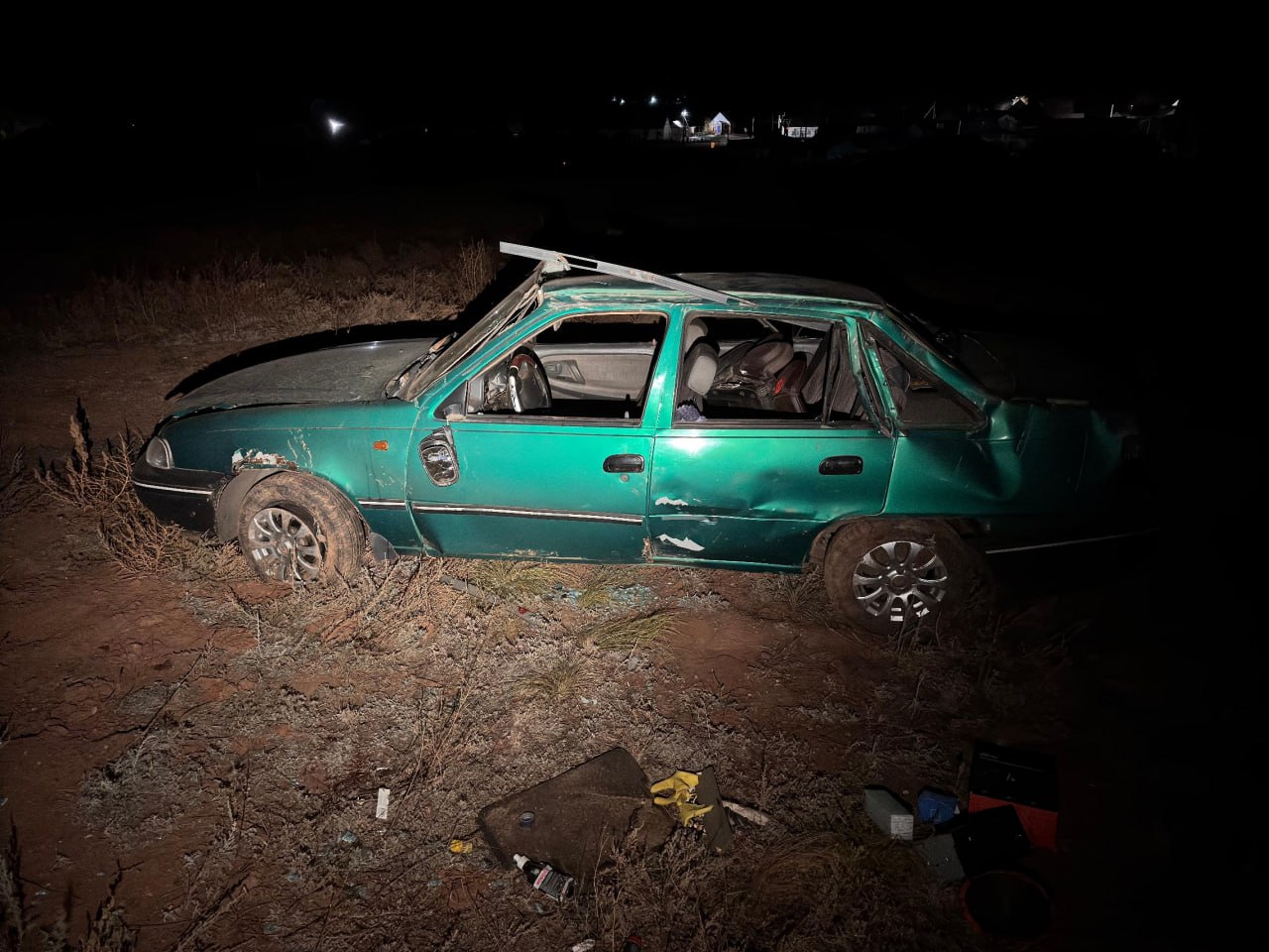 Машина слетела в кювет и опрокинулась. Двое пассажиров и водитель госпитализированы с различными телесными повреждениями.