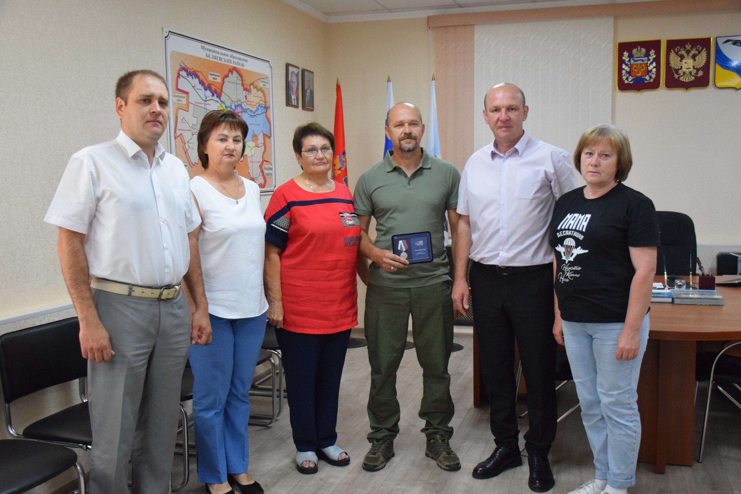 Врио главы Беляевского района Юрий Михалёв вручил местному жителю — ветерану МВД и боевых действий — общественную медаль «Отец солдата».